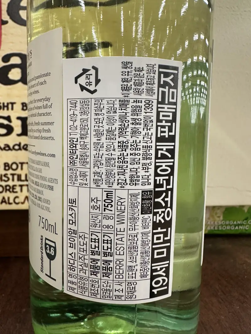 1. 하디스 VR 모스카토 화이트 와인 용량 도수