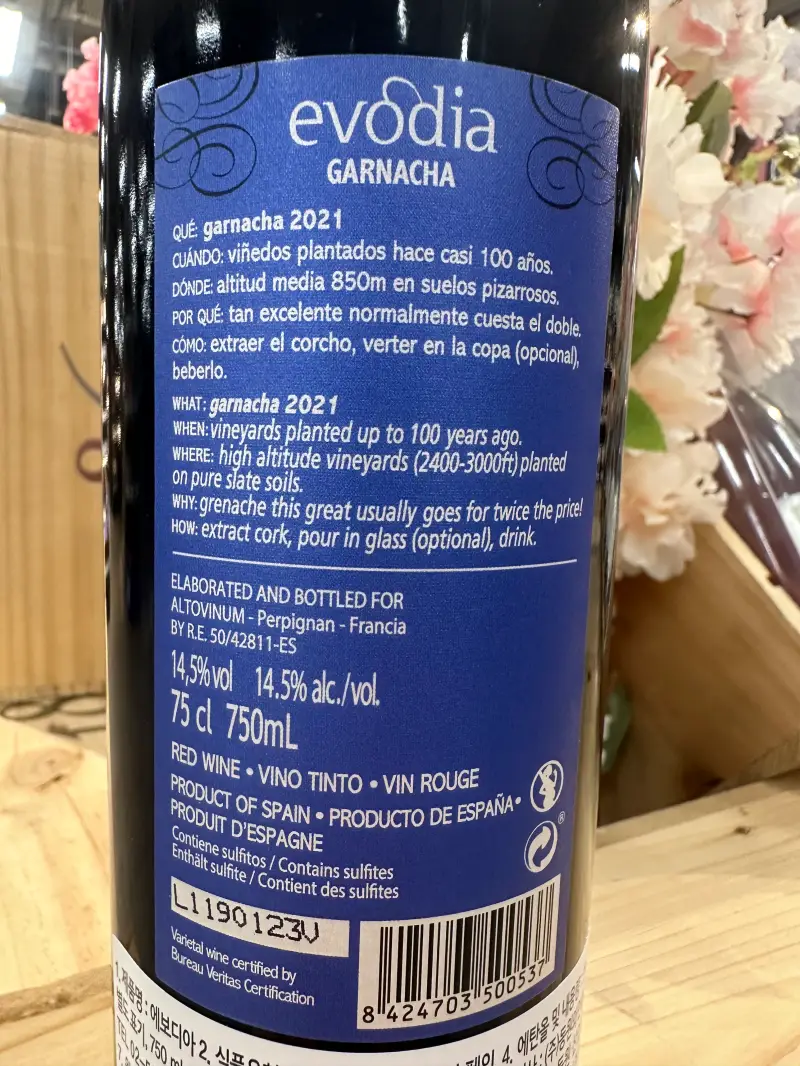 에보디아 가르나차는 와인을 좋아하는 사람이라면 반드시 읽어보는 '신의 물방울'에 등장하는 와인으로 유명합니다. 맛과 향에 비하여 가격대가 저렴한 것으로 알려진 만큼 가성비 와인을 찾으시는 분에게 적합한 제품입니다.